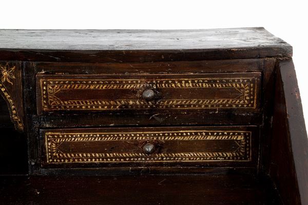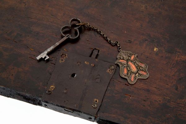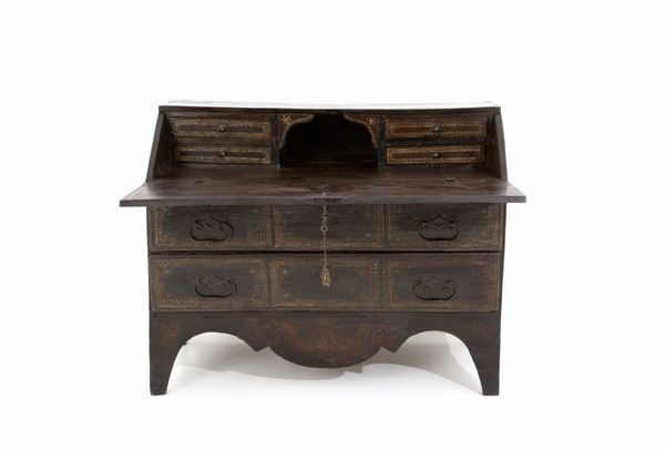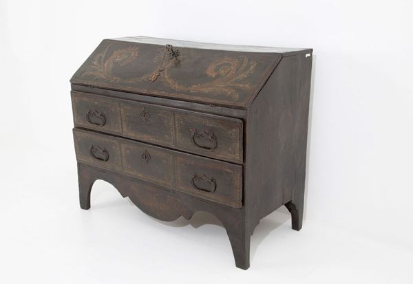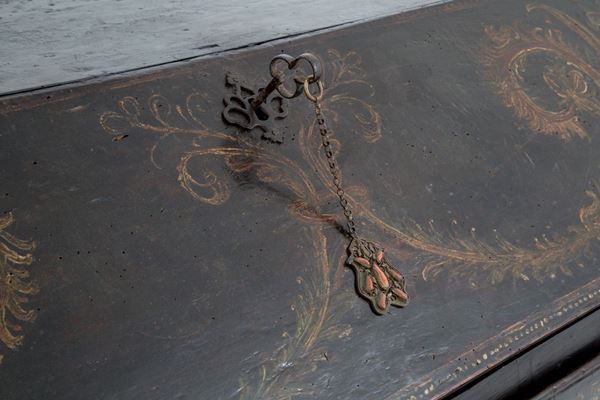 Lacquered wood flap. Poor art. Southern Italy. Early 18th century. Defects.