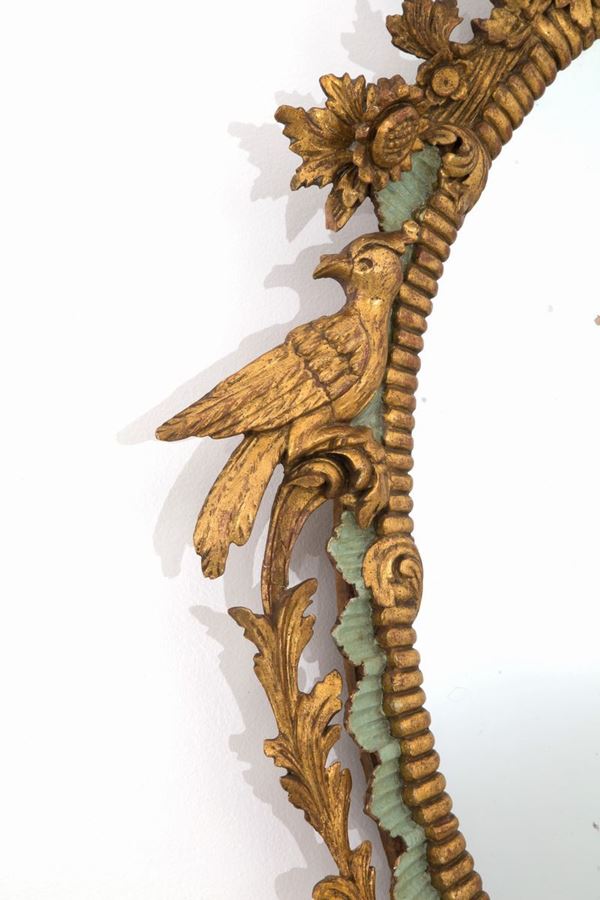Mirror in carved, lacquered and gilded wood. Early 20th century.