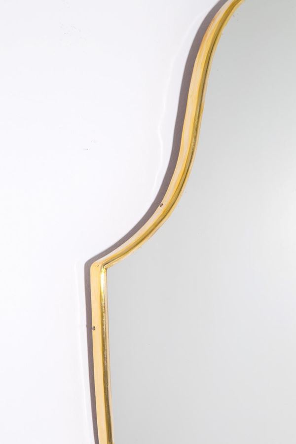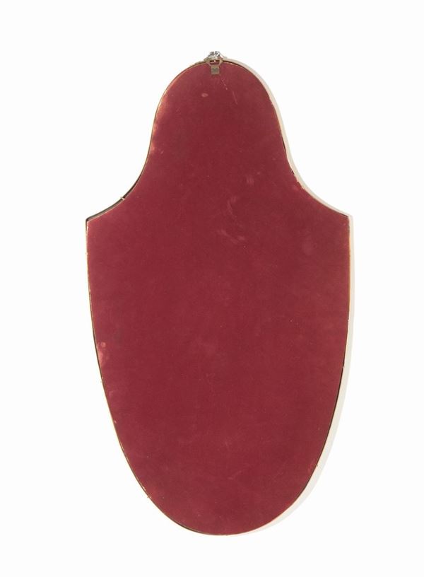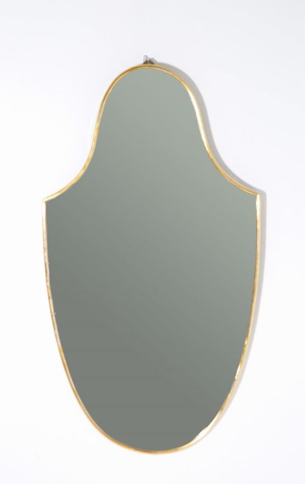 Shield-shaped mirror in brass. Italian manufacture. 1950s.