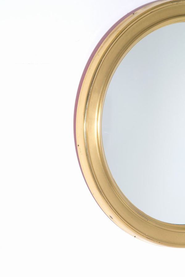 Round brass mirror. Italian manufacture. 1950s.