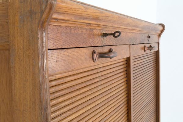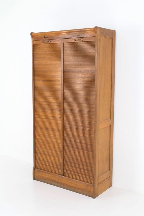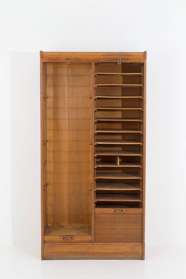 Office furniture in wood with two grissinated gate doors with shelves on the right. 20th century. Signs of wear.