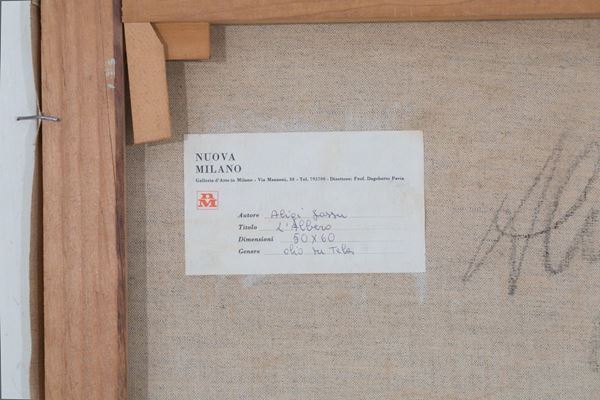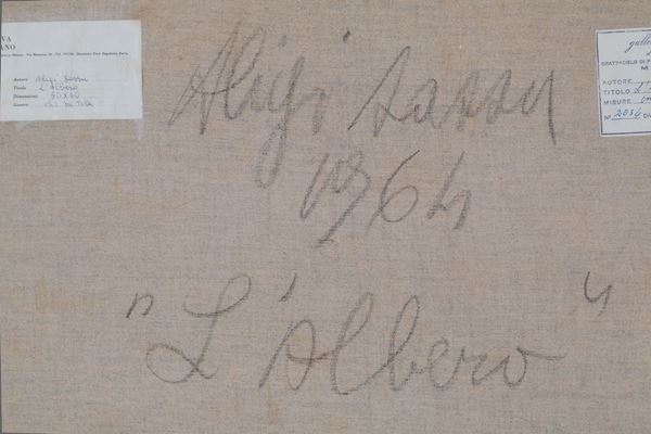 Oil painting on canvas entitled '' THE TREE ''. Signed lower right. Countersigned and dated 1964 on the back. With cartouche of Galleria 32 and Nuova Milano. In frame.