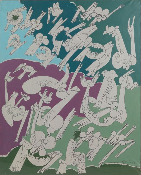 Oil painting on canvas raff. '' ABSTRACT SUBJECT ''. Signed and dated '64 lower right. In frame.