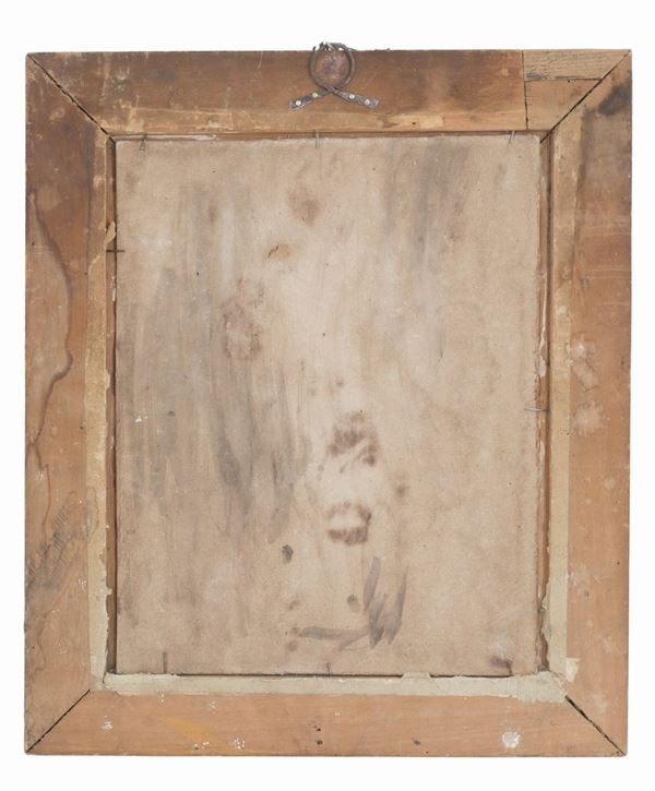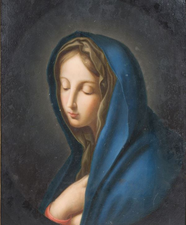Oil painting on cardboard raff. " FACE OF VIRGIN MARY ". Late 19th-early 20th century. In gilded frame. & Nbsp;