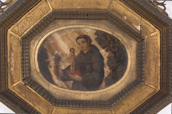 Oil painting on onyx raff. ''HOLY''. 17th century. In guillochè frame with chiseled bronze finishes.