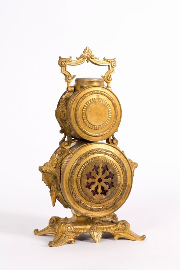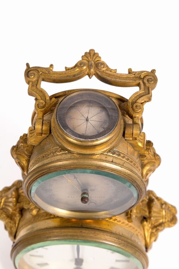 Chiseled and gilded bronze table clock with barometer and compass. Signed PICARD & nbsp; on the upper dial. & Nbsp; Marked on the bottom.