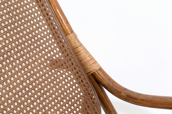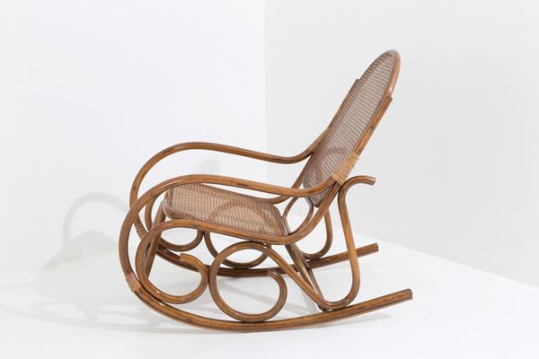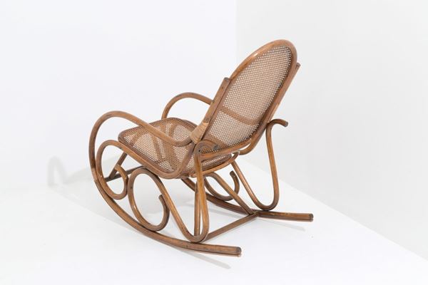 Rocking chair in Manila cane with seat and back in Vienna straw. Friuli. 70's.