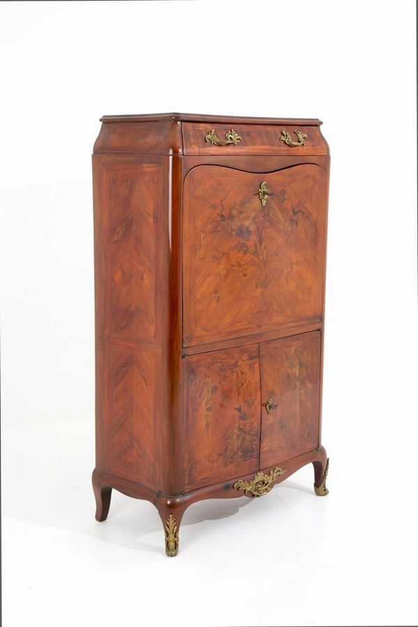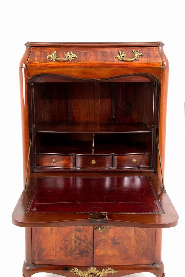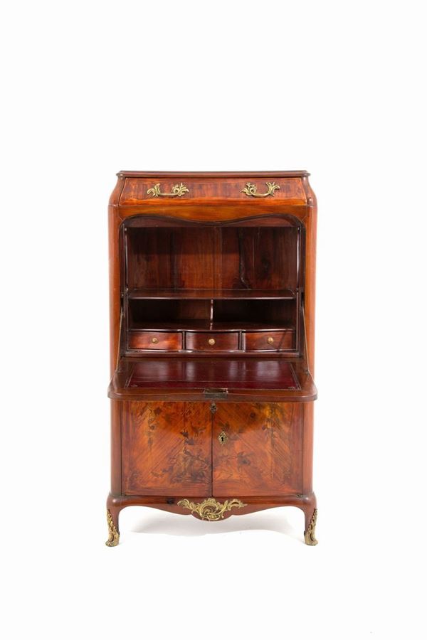 Secretaire veneered and inlaid in various woods. France. XVIII century.