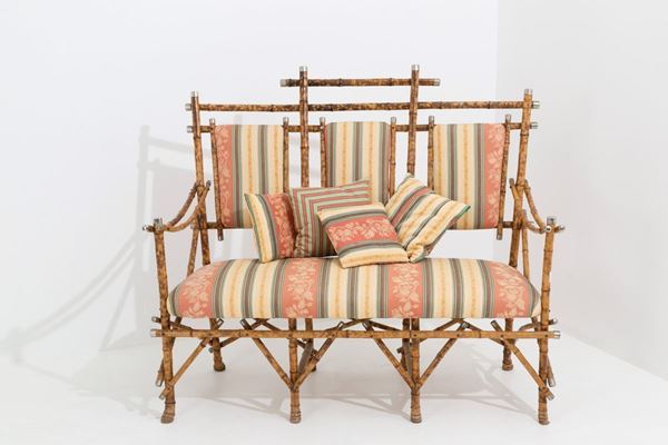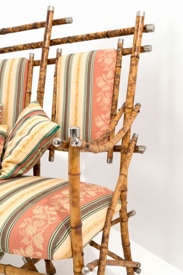 Sofa in bamboo with metal ferrules. XX century. & Nbsp;