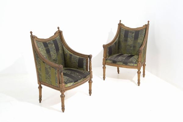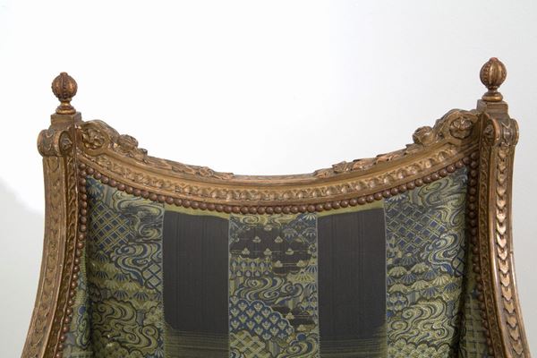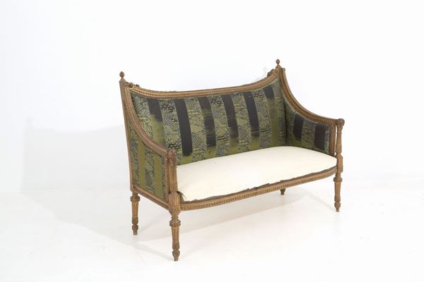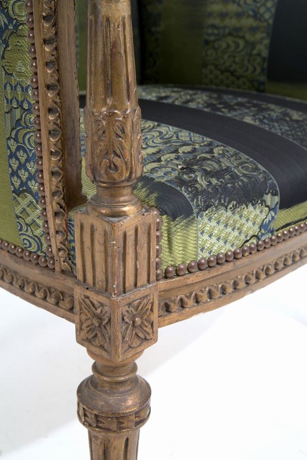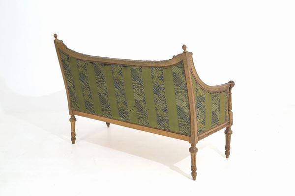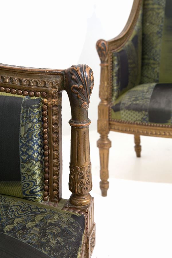 Sofa and two armchairs in carved and gilded wood. Late 19th century. Padding defects.