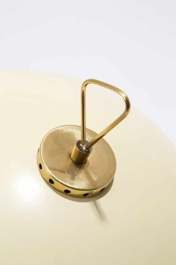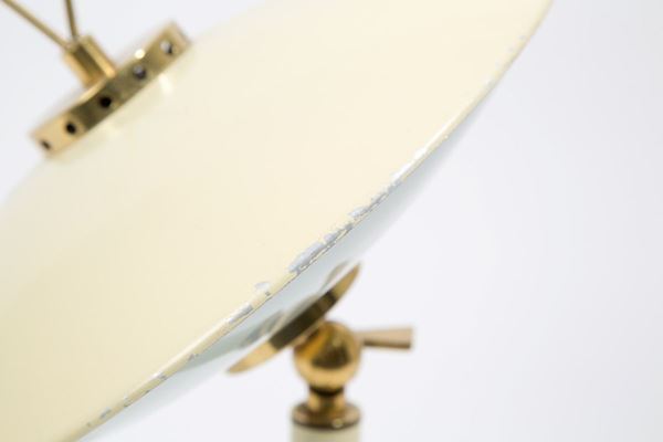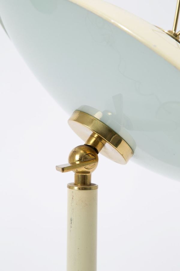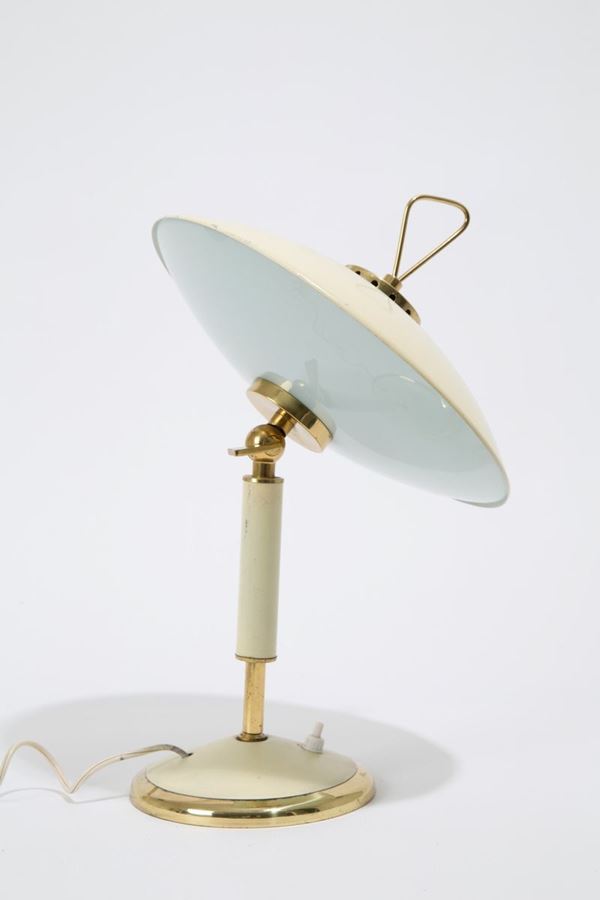 Table lamp in enamelled metal, glass and brass. 70's. Signs of wear.