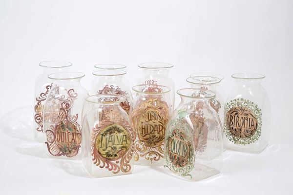 Twelve apothecary jars