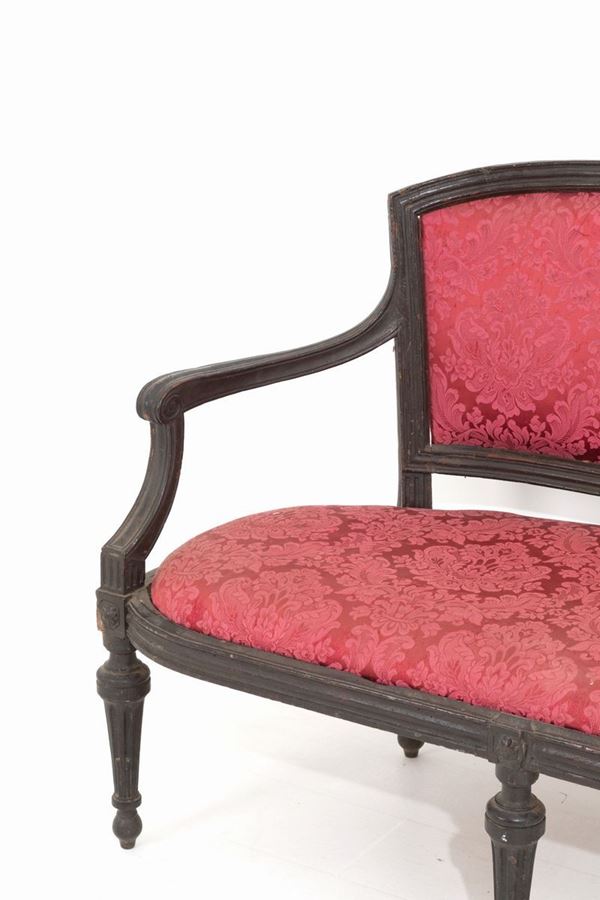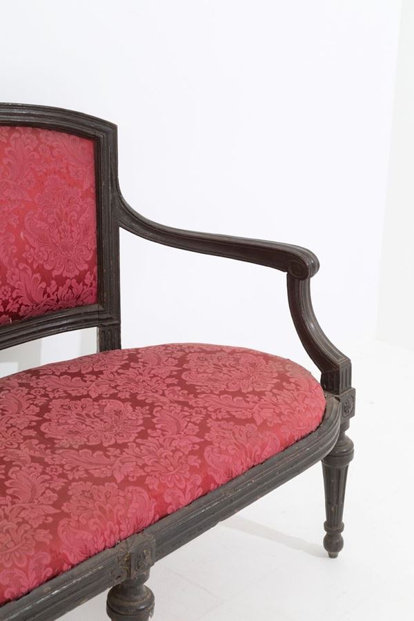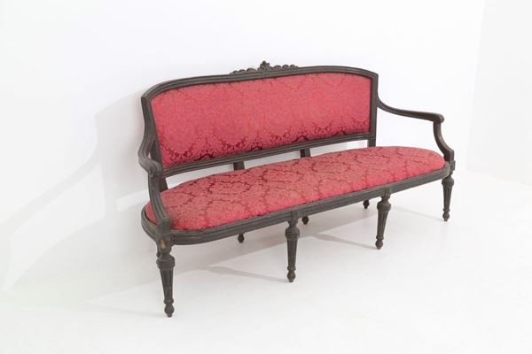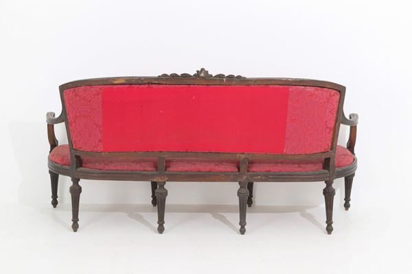 Walnut sofa with curved back, fluted legs and finely carved molding. Genoa. XVIII century. & Nbsp;