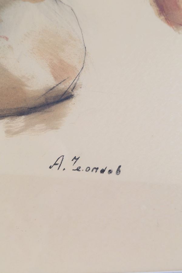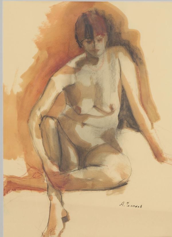 Watercolor on raff paper. '' NUDE OF WOMAN ''. Unidentified signature lower right. 20th century. In frame.