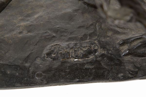 Bronze sculpture depicting "THE ESCAPE INTO EGYPT". Signed at the base.
