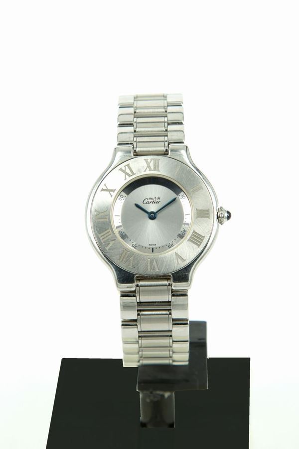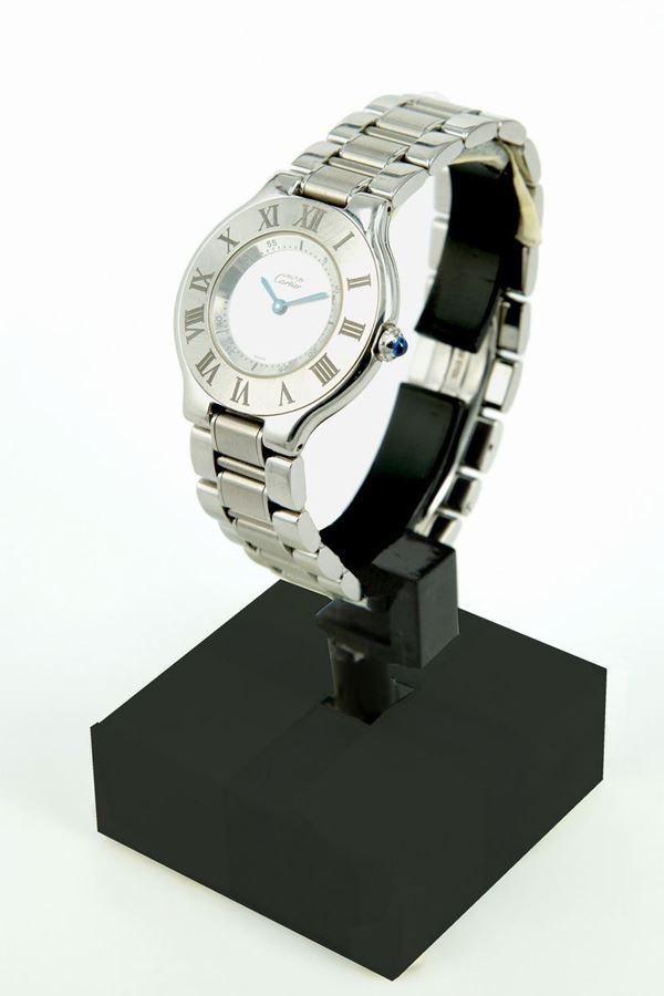 Must de Cartier watch in brushed steel with quartz movement. 2000-2010.