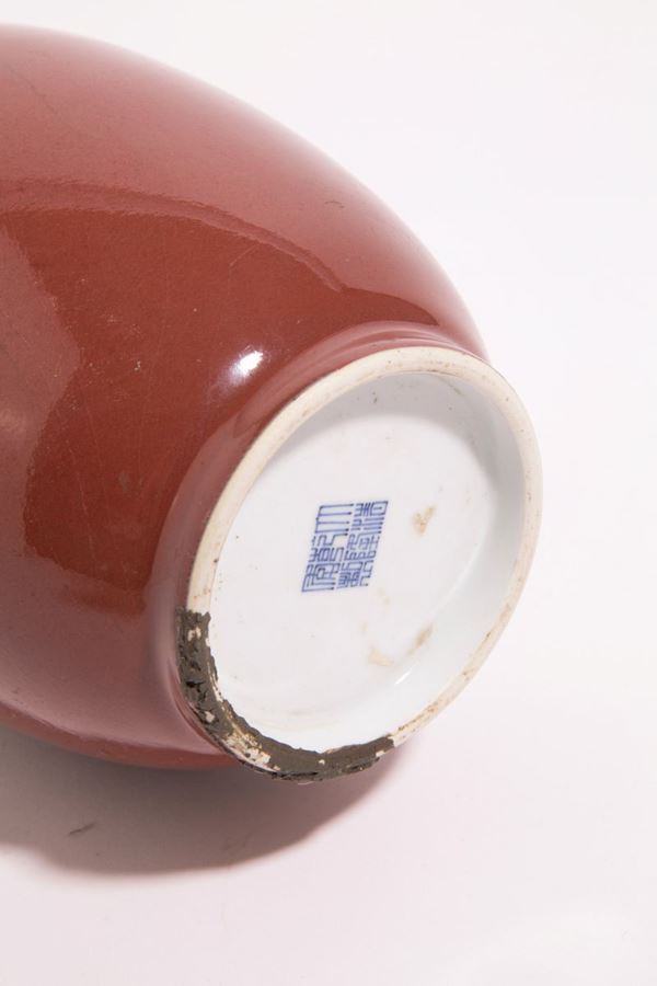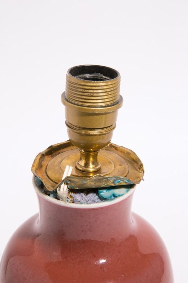 Lamp-mounted ceramic vase Kiang long ox blood. Brand on the bottom. China.