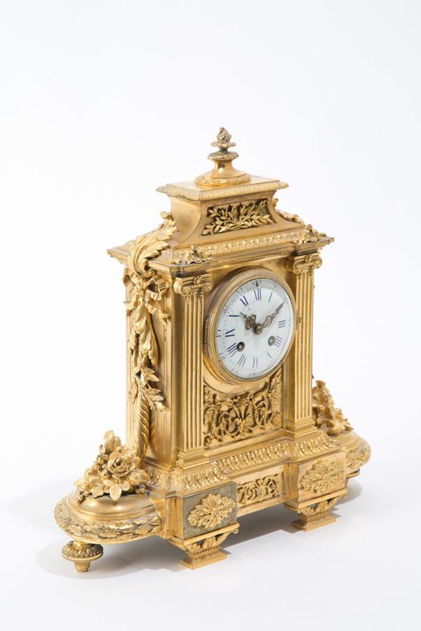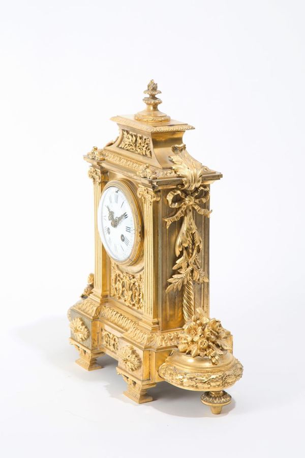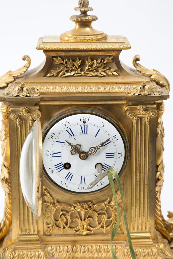 Finely chiseled and gilded bronze watch. Late 19th century.