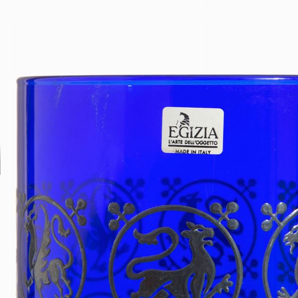 Cobalt blue glass vase with silver reliefs depicting "FANTASTIC ANIMALS". With manufacturer's label.