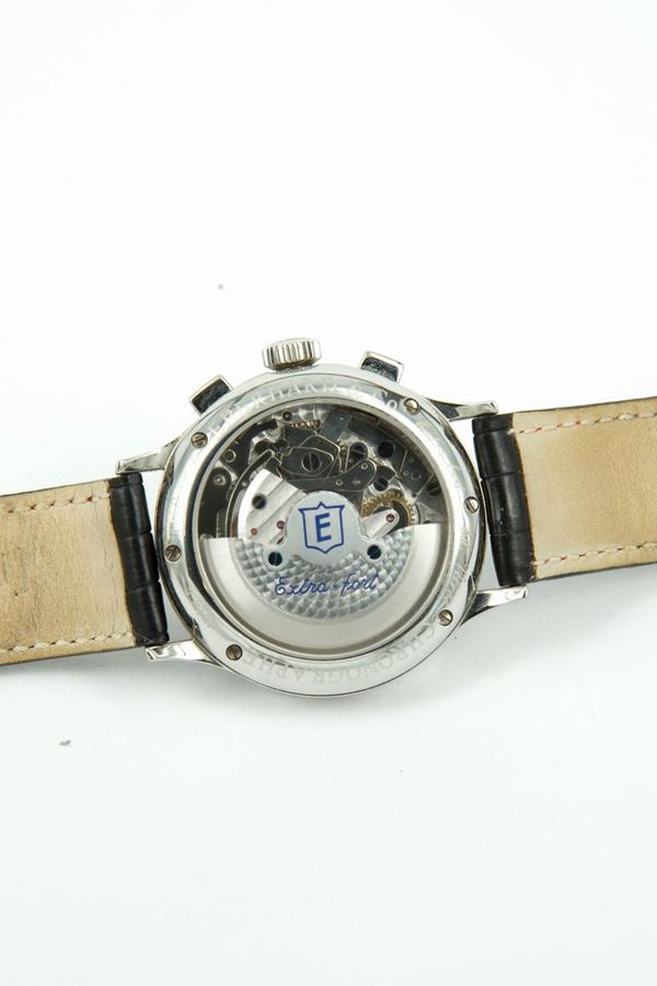 Extra Fort Chrono automatic watch in steel with leather bracelet. Years 2010/2020.
