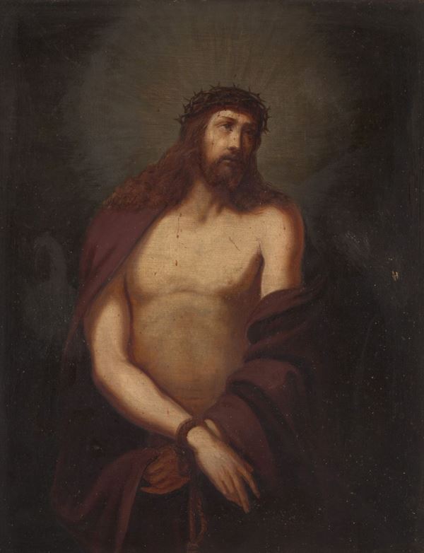 Oil painting on canvas depicting "ECCE HOMO". XVIII century. In frame.