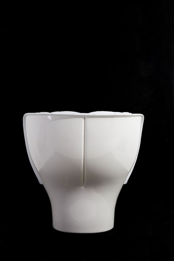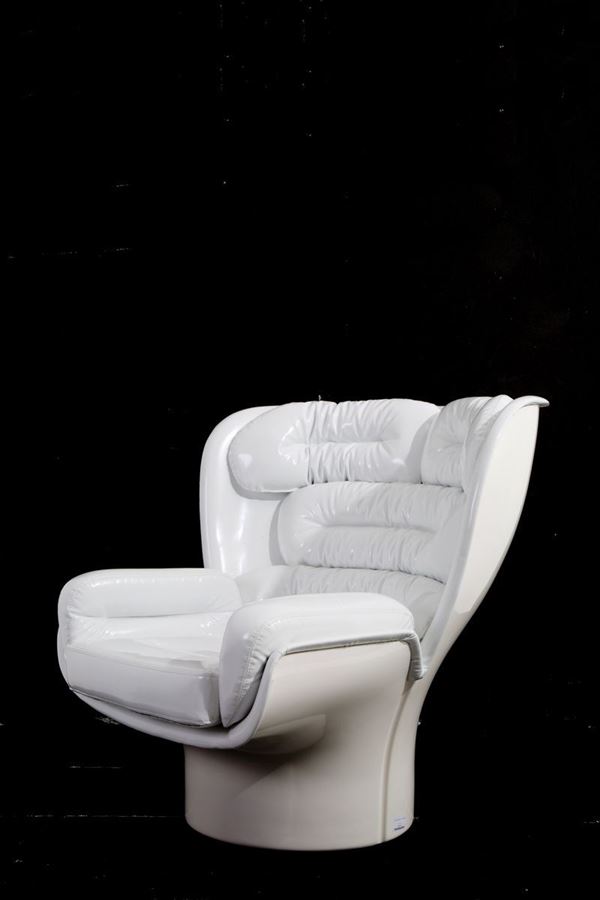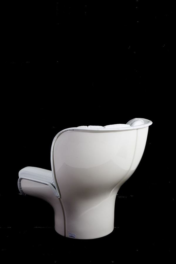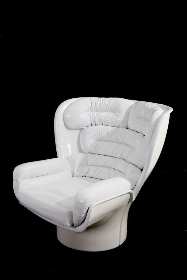 Elda swivel armchair in white resin with detachable padded cushions covered in white vinyl. LONGHI's production. 1980s.