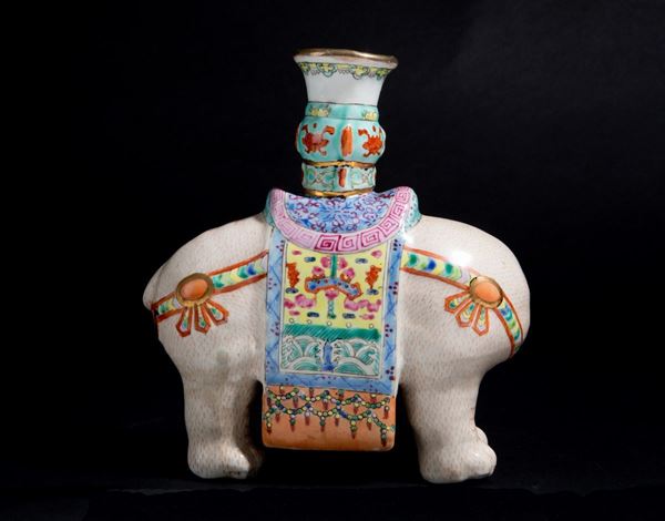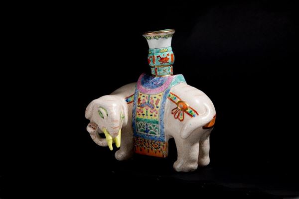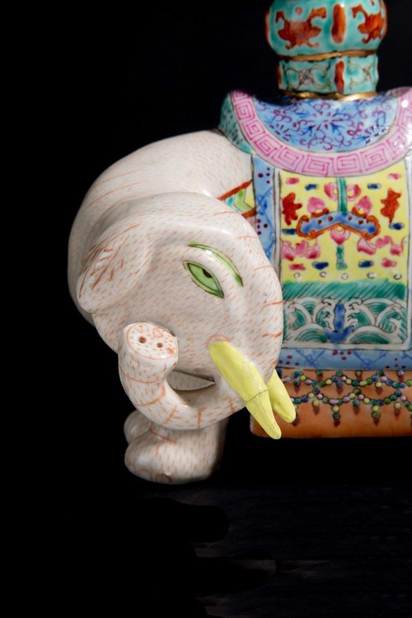 Painted porcelain sculpture depicting "ELEPHANT". China. Defects.