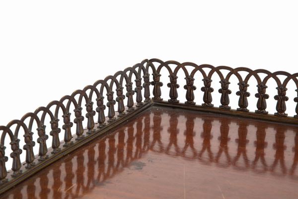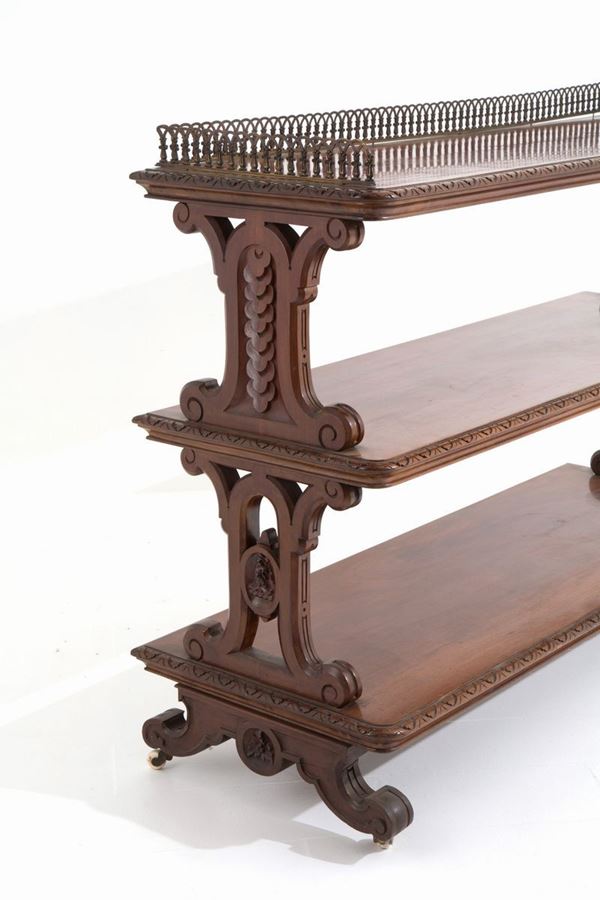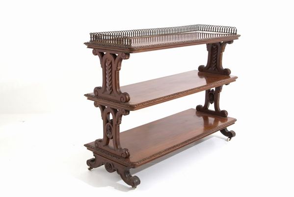 Three-storey etagere in mahogany with brass railing. England. Victorian period.