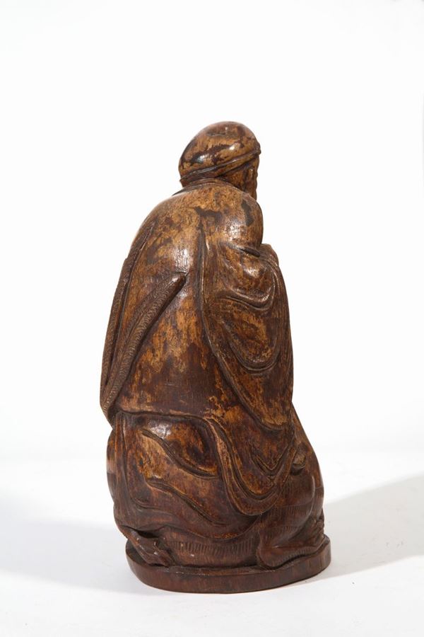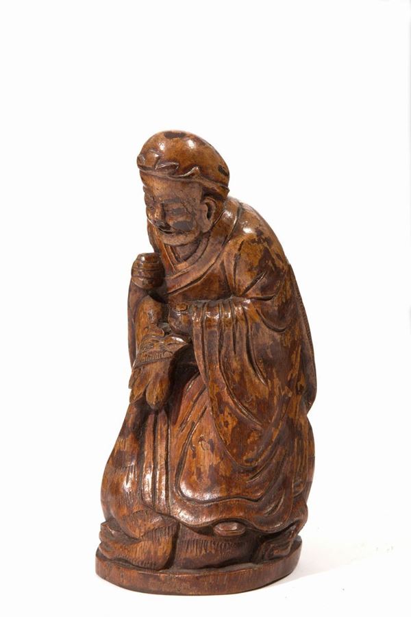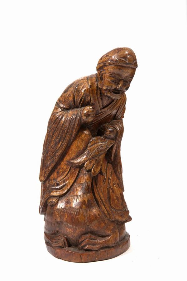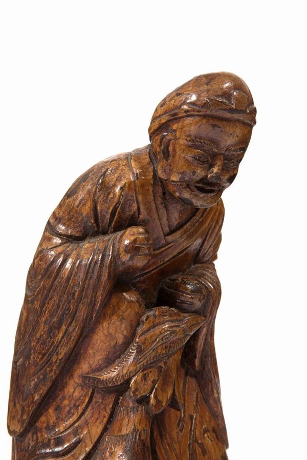 Bamboo sculpture depicting "HOLY MAN". China. 19th century.