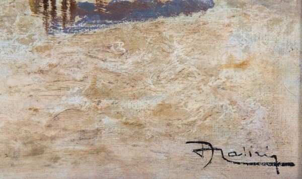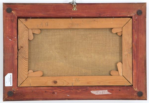 Oil painting on canvas depicting "DONKEY WITH CART ON COUNTRY ROAD". Unidentified signature.