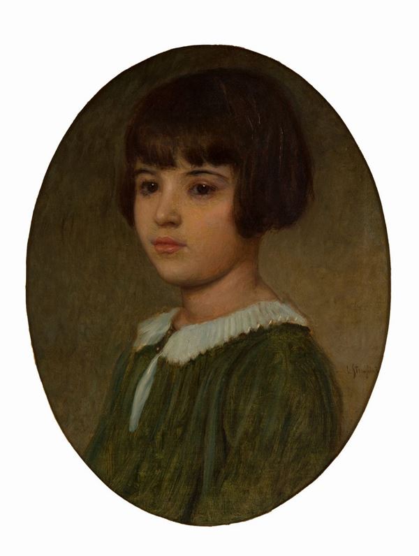 Oil painting on canvas depicting "GIRL". Signed lower right. In gilded frame.