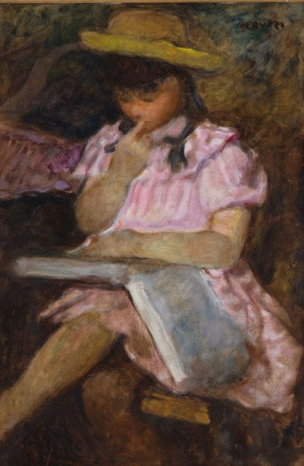 Oil painting on canvas cardboard depicting "LITTLE LETTER". Signed top right. In frame.