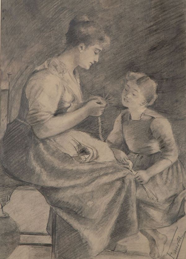 Pastel painting on paper depicting "PORTRAIT OF MOM WITH CHILD". Signed Fausta lower right. In frame.