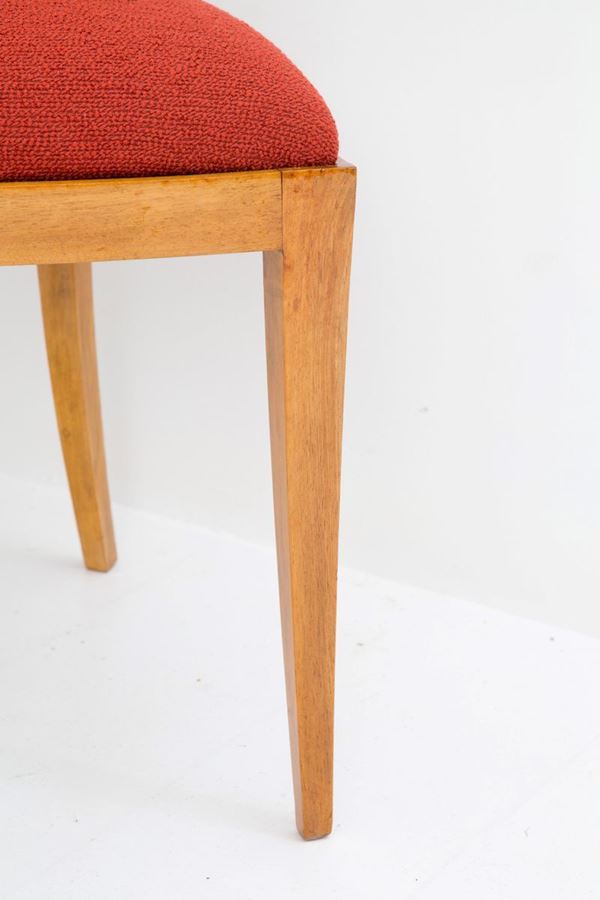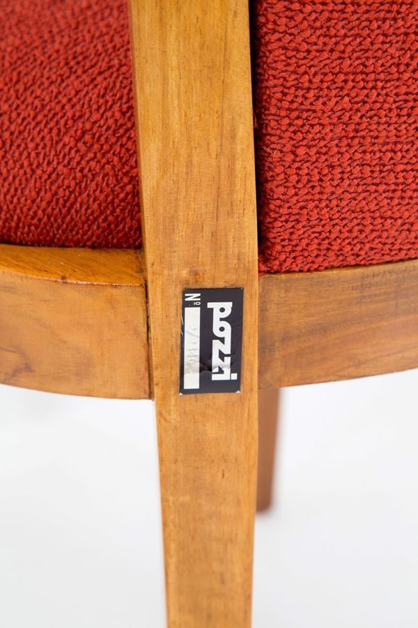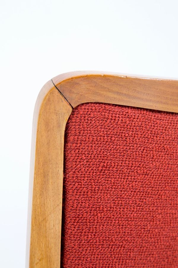 Pair of armchairs in terracotta-colored bouclé fabric. WELLS's production. 60's. Serial number label. Restored.