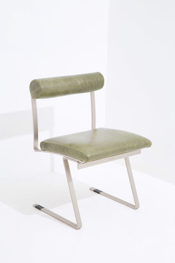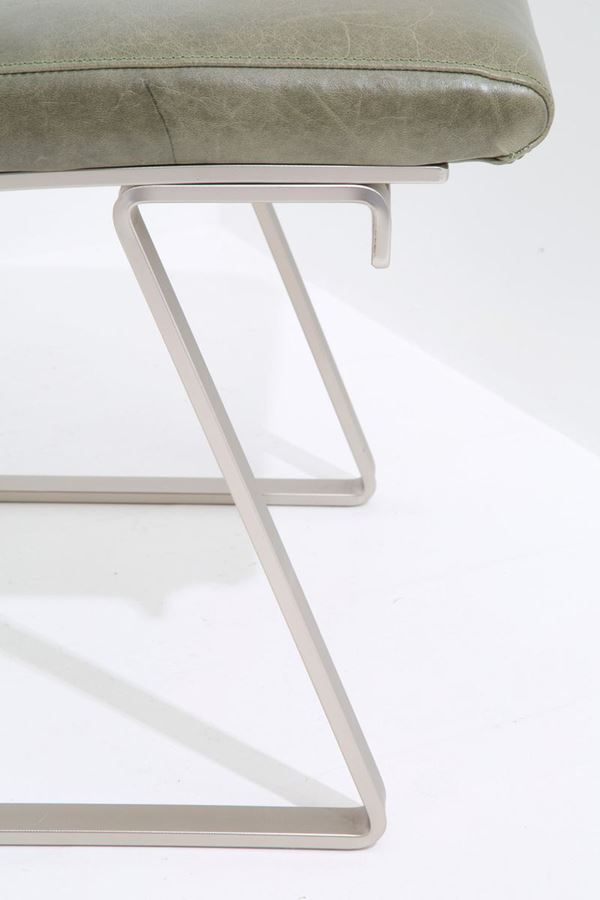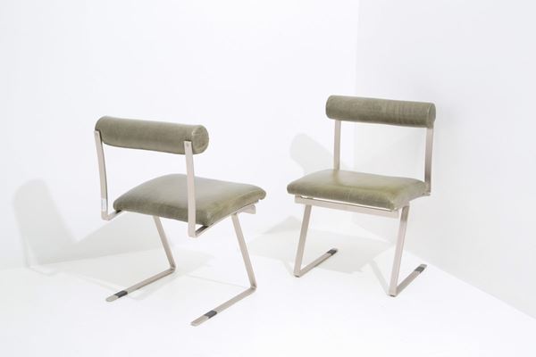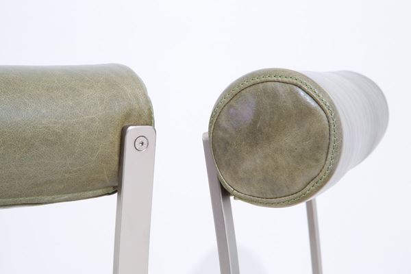 Pair of Roll chairs in steel and green leather. SORMANI production. With manufacturer's mark. 1970s.