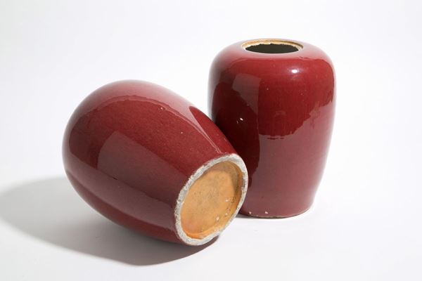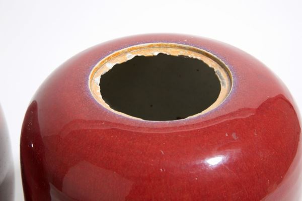 Pair of ox blood ceramic vases. China.