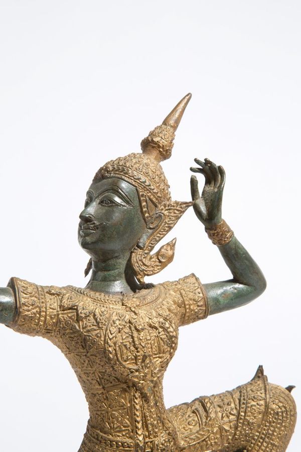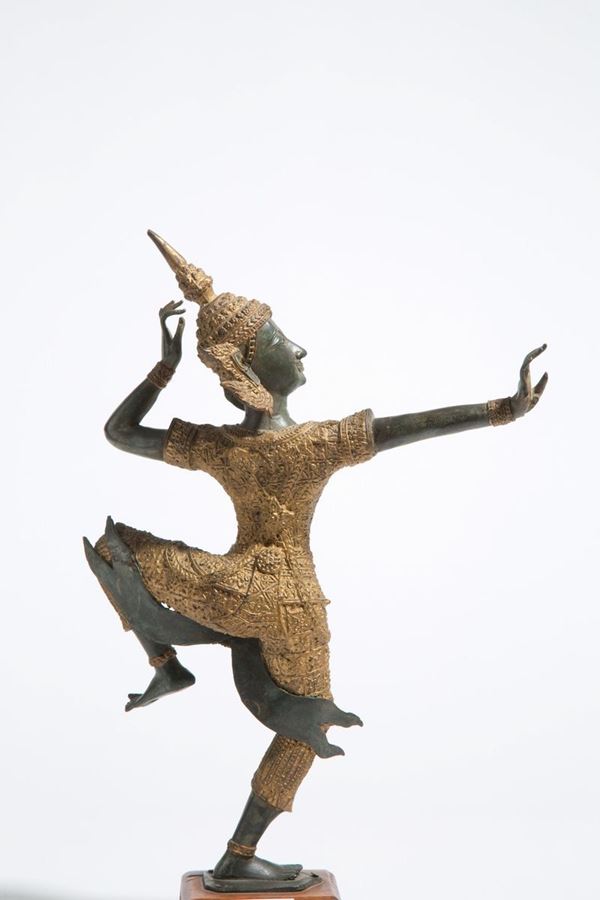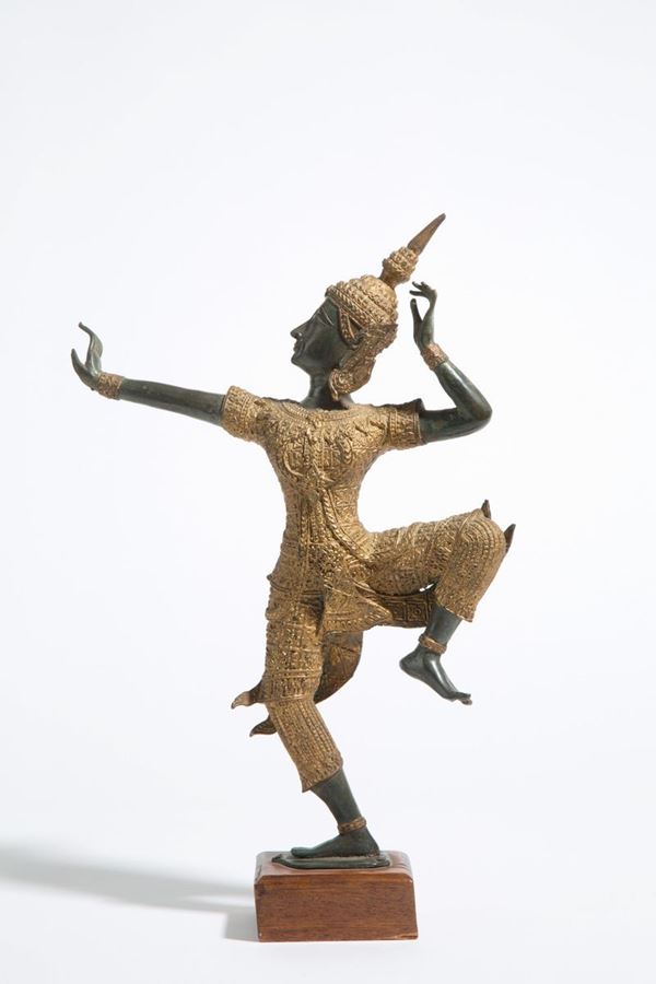 Bronze sculpture depicting "KING RAMA". Wooden base. Thailand. Rattanakosin period. Late 19th century. Missing bow.