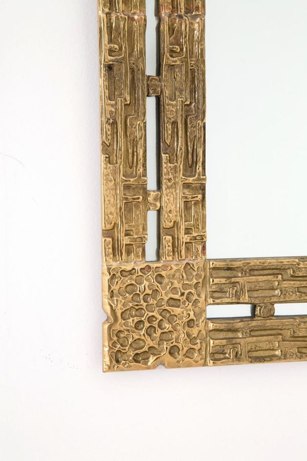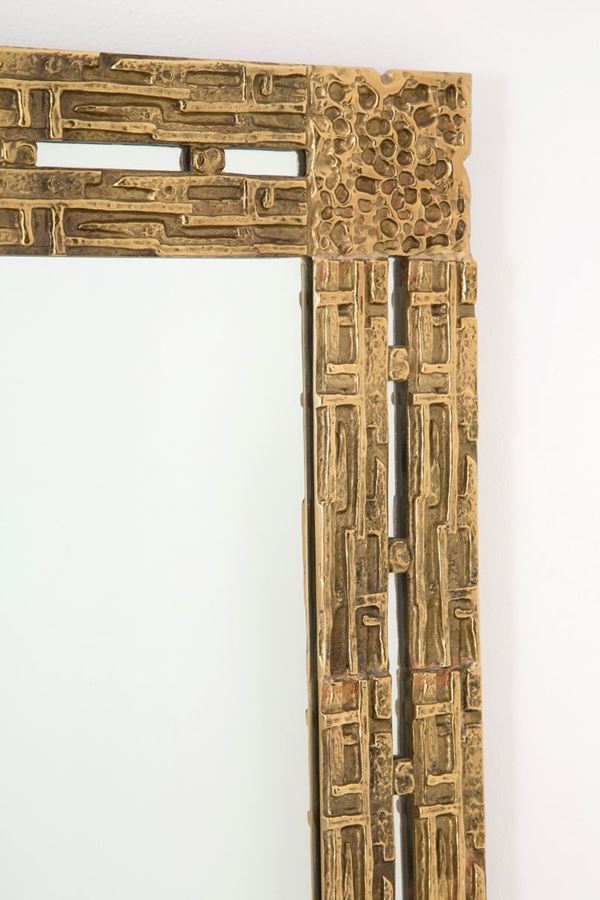 Mirror with sculptural frame in bronzed brass. 1970's. Slight wear of time.
