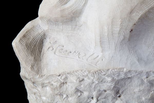 Sculpture in white Carrara marble depicting "THE NAME DAY OF GRANDMA". Published in the catalog by Ezio Ceccarelli sculptor (1865-1927).