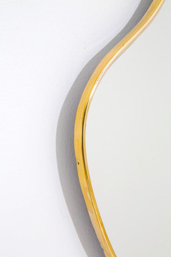 Shaped mirror in brass. Italian manufacture. 1950s.