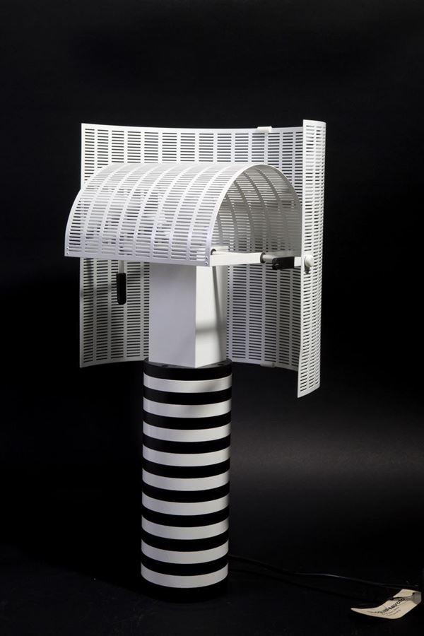 Shogun table lamp. Stem in black and white painted metal with adjustable diffusers in white painted perforated steel sheet. ARTEMIDE's production. With original tag. In perfect working order.