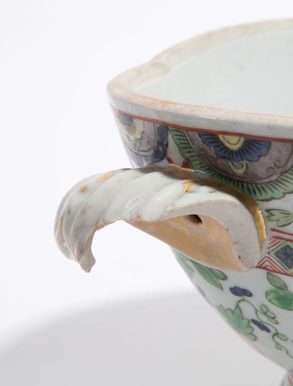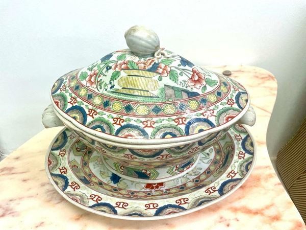 Company of the Indies porcelain soup tureen with lid and plate. China. XVIII century. Defects.