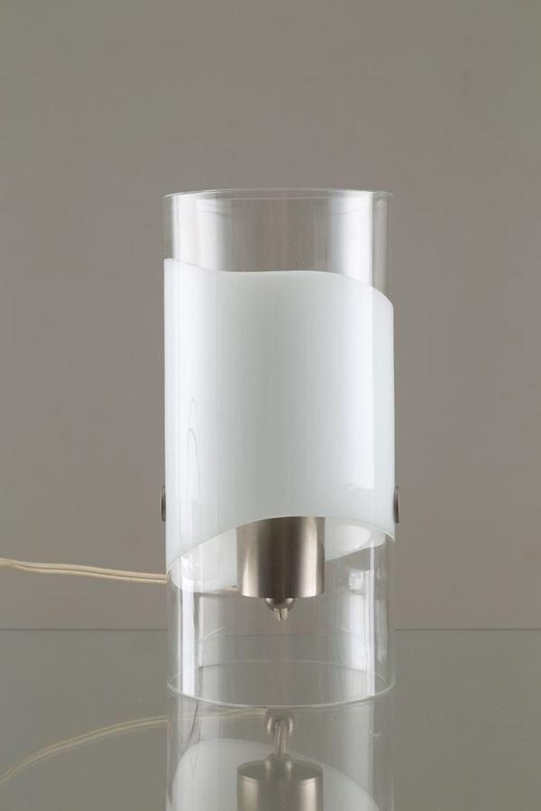 Table lamp in steel and white and opal glass. MAZZEGA's production. 1960's.