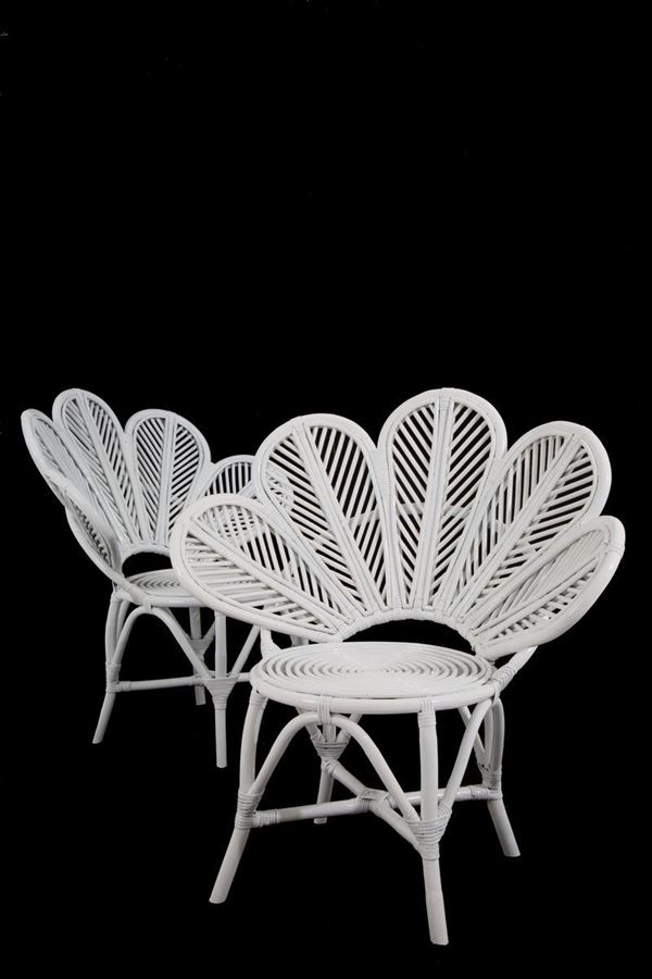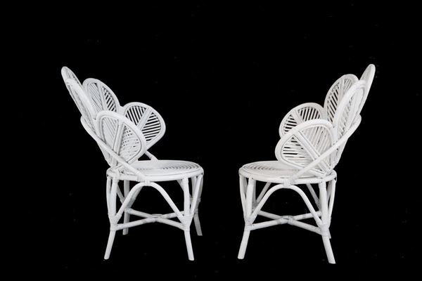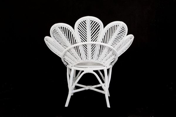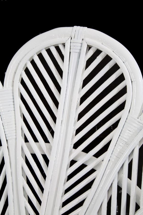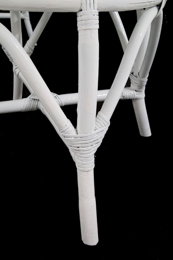 Two wicker armchairs. 60's. Venetian manufacture. Restored and glossy white lacquered.