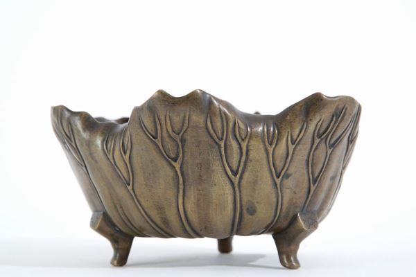 Three-leg bronze bowl with naturalistic decoration. China. 19th century.