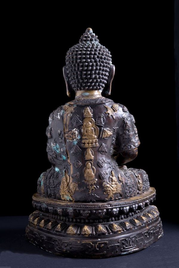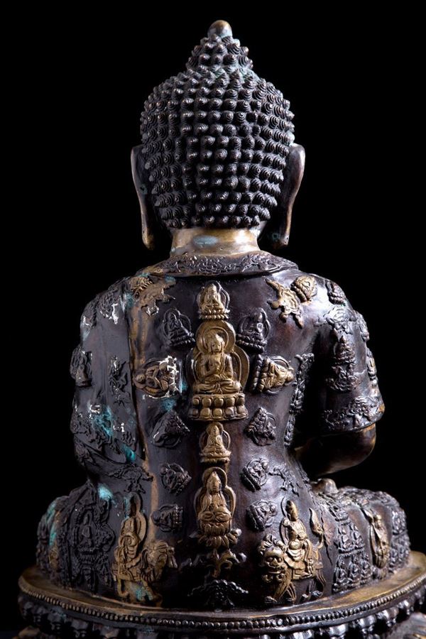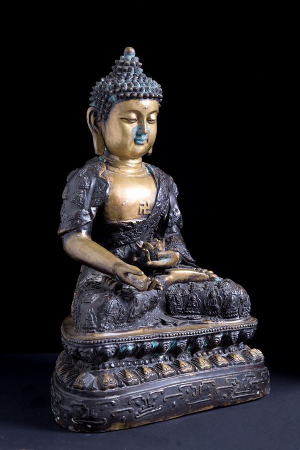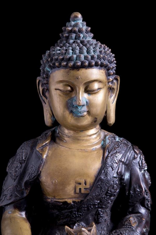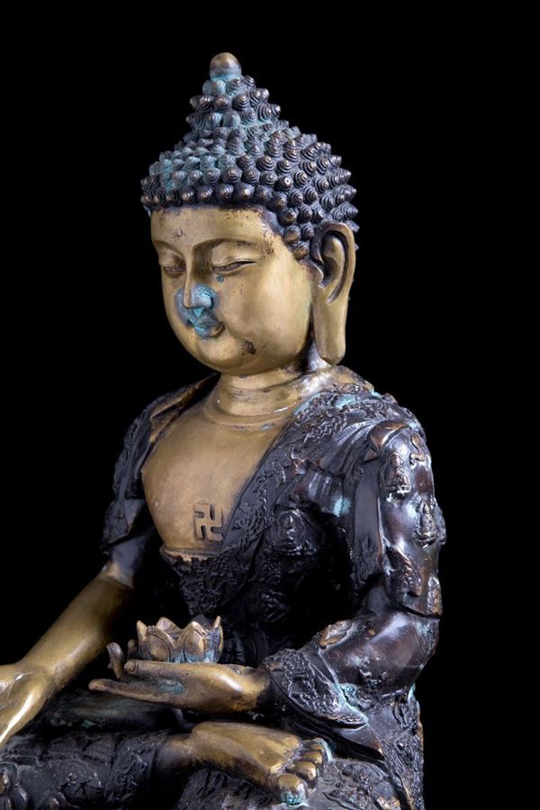Bronze sculpture depicting "DIVINITY SITTING WITH LOTUS FLOWER". China.