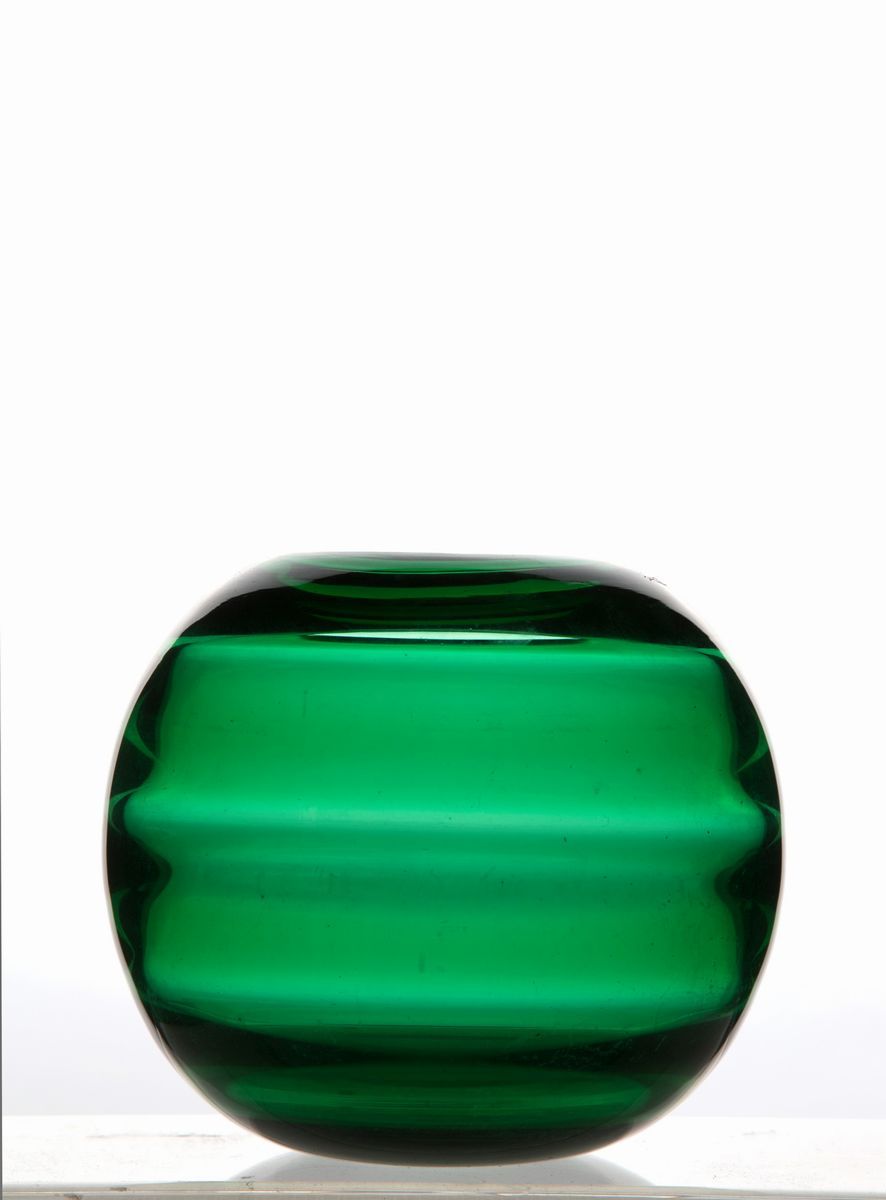 Green glass bubble jar. ORREFORS manufacture. 1930s.
