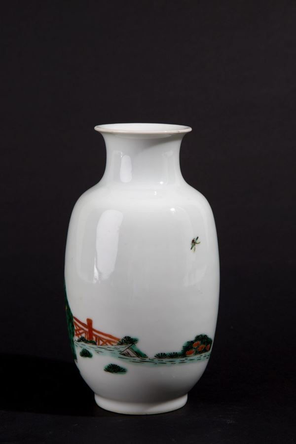 Porcelain vase depicting "GUANYN IN THE GARDEN". China. Republic period.