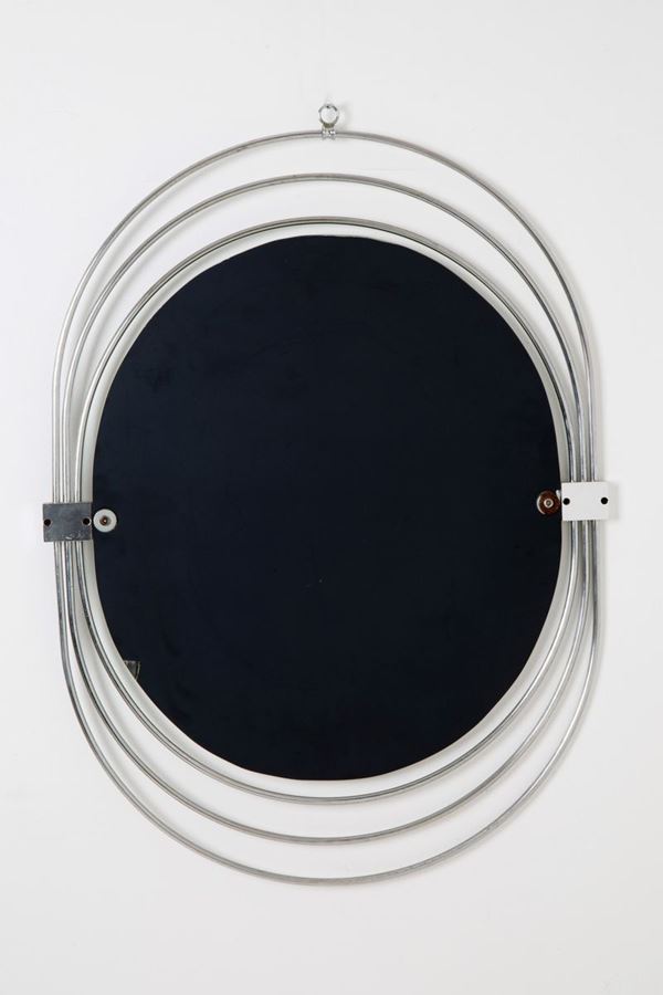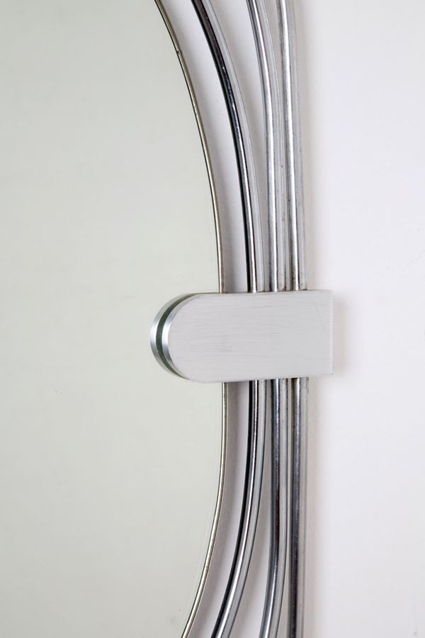 Oval mirror in chromed metal. 1960s-1970s.