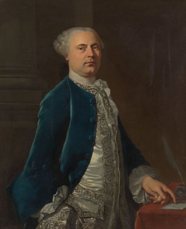 Oil painting on canvas depicting "PORTRAIT OF A GENTLEMAN". First half of the 18th century. In carved and gilded vintage frame. Already relined.